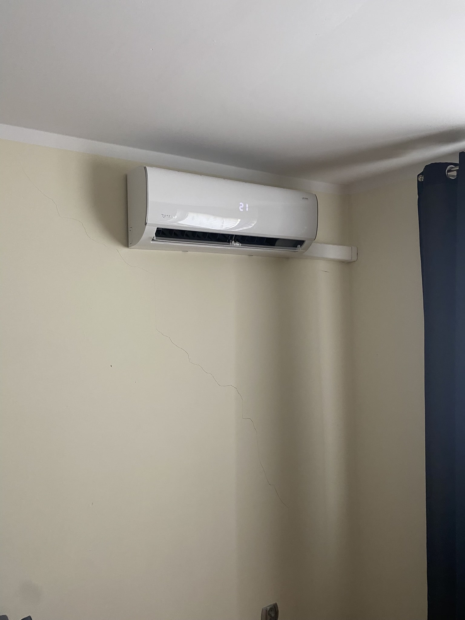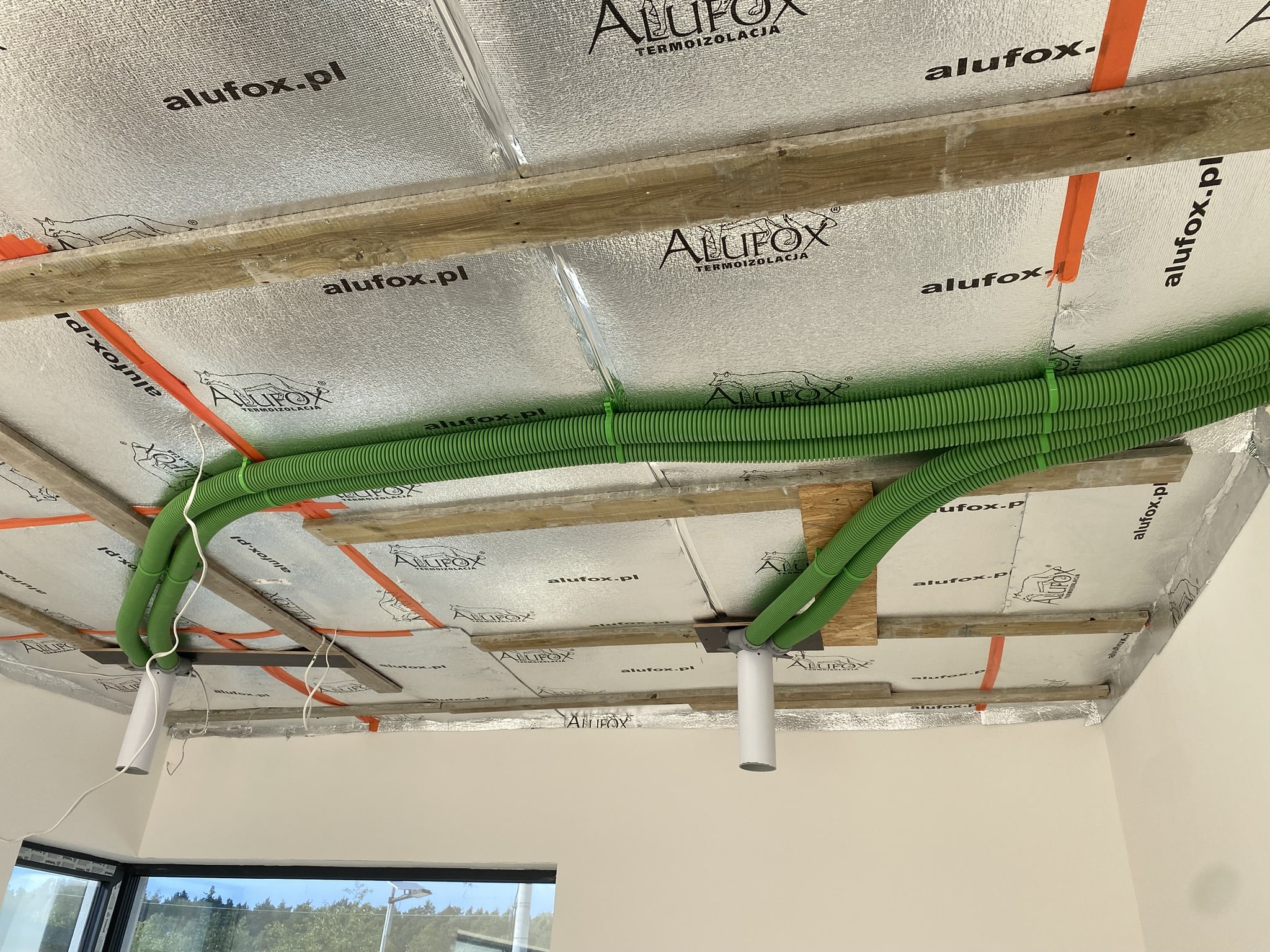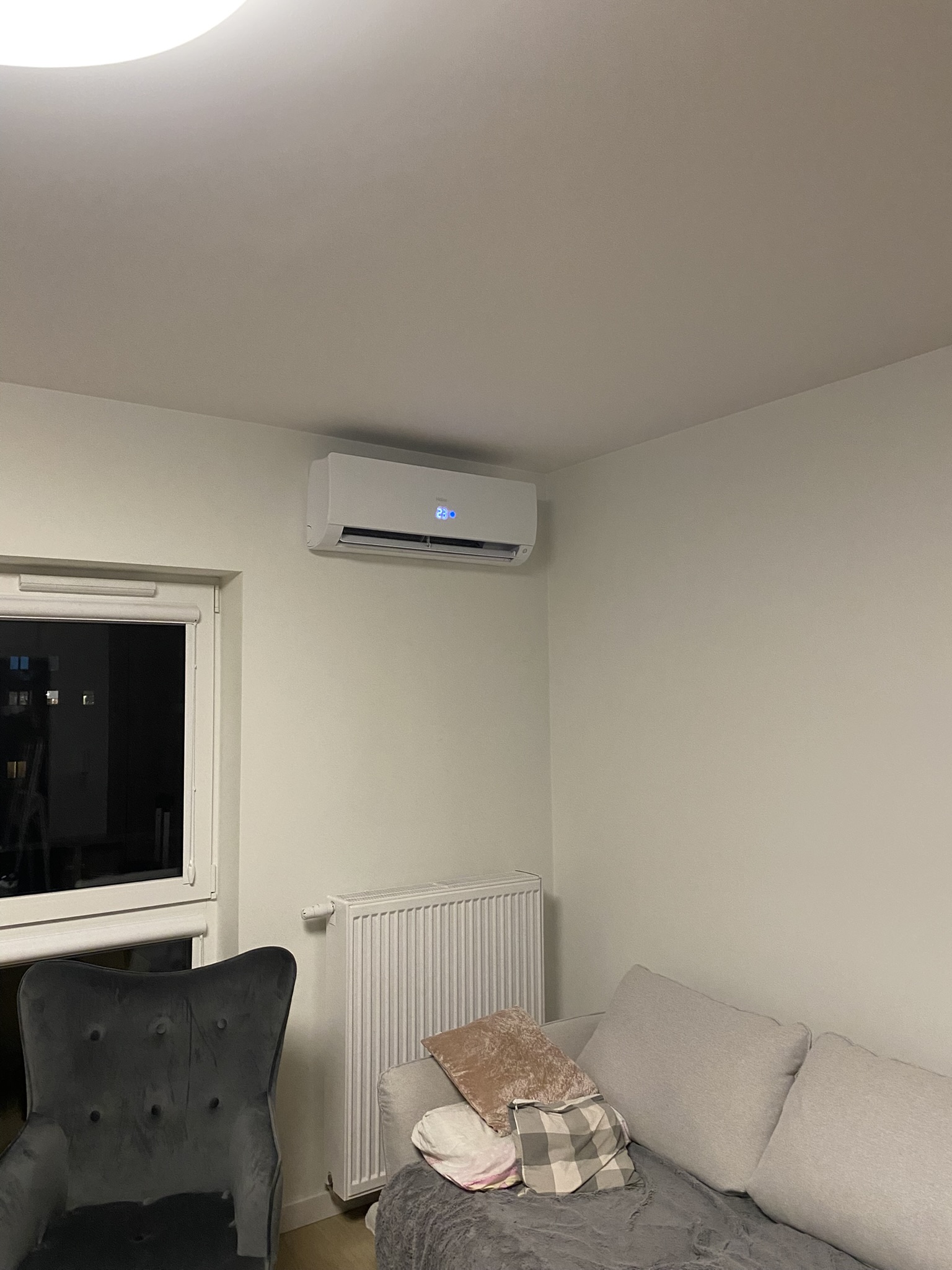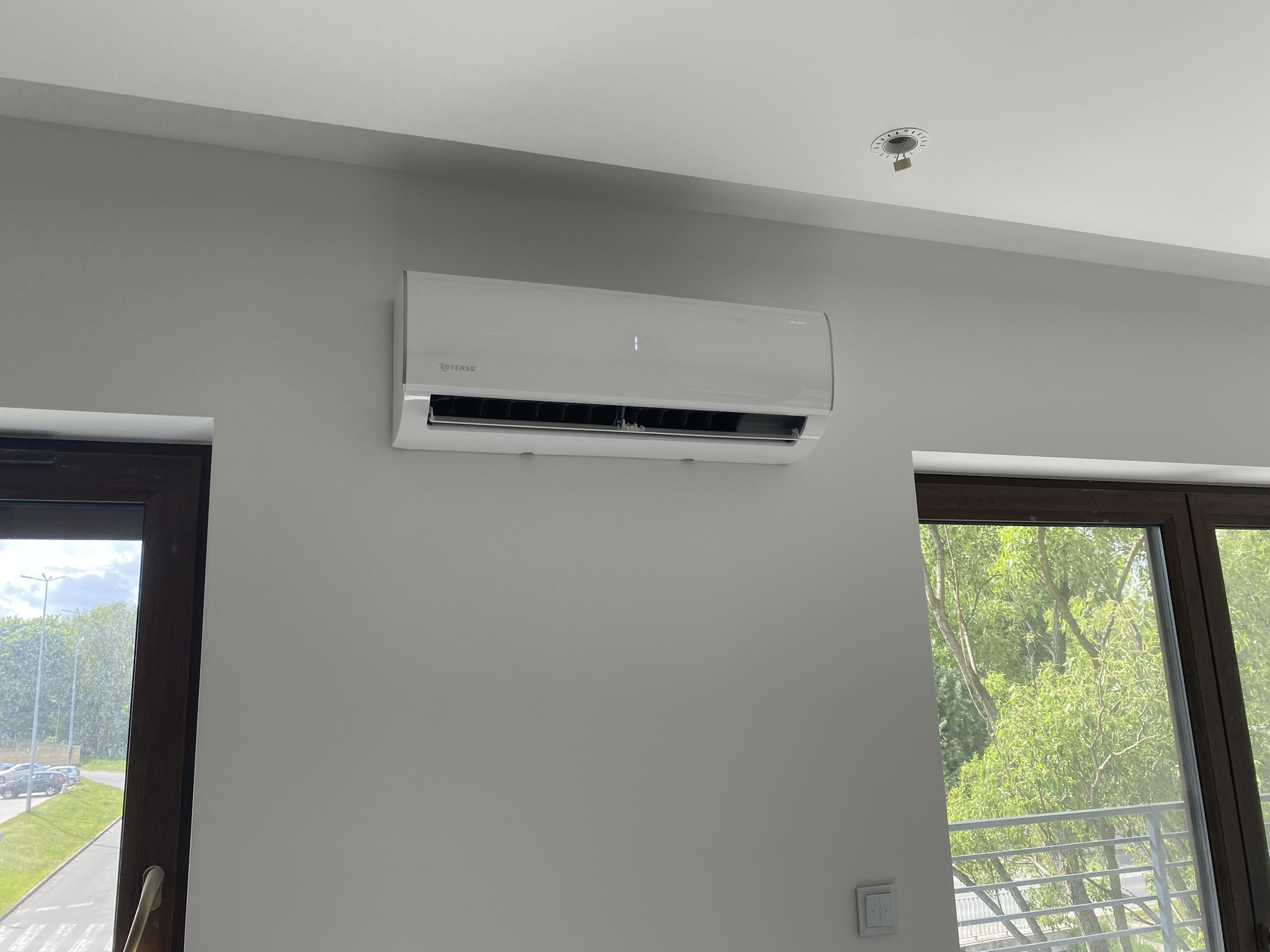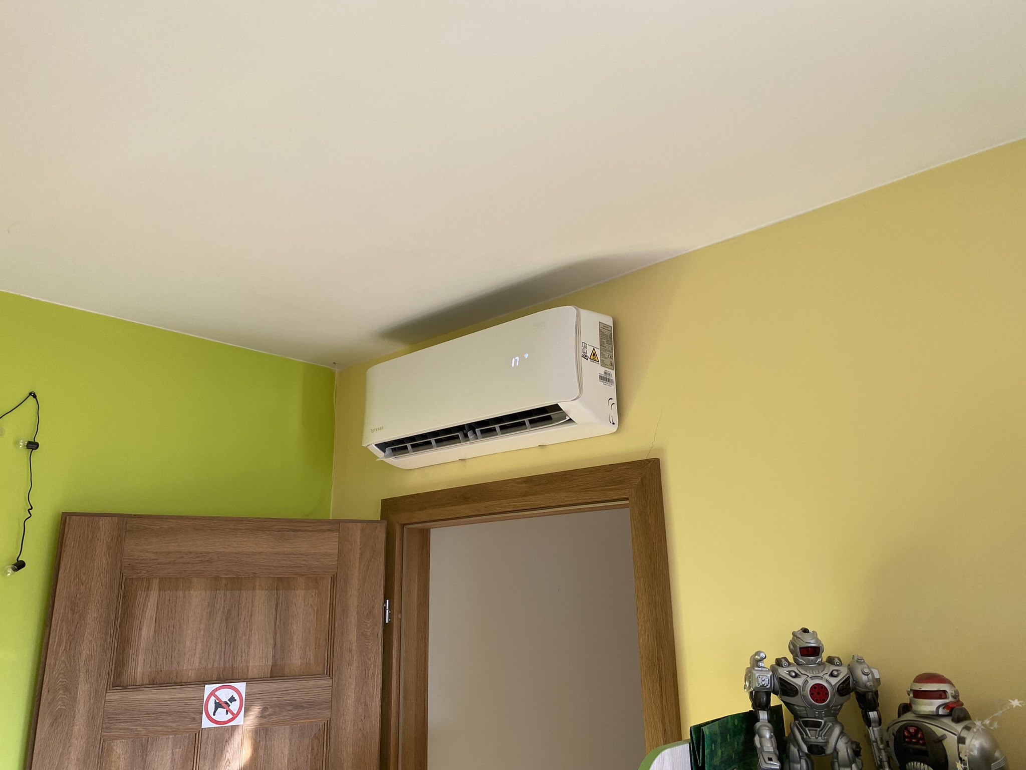 Jednostki wewnetrzne zamontowane nad drzwiami pokojów, instalacja poporwadzona nad podwieszanym sufitem z zastosowaniem pompek skroplin.