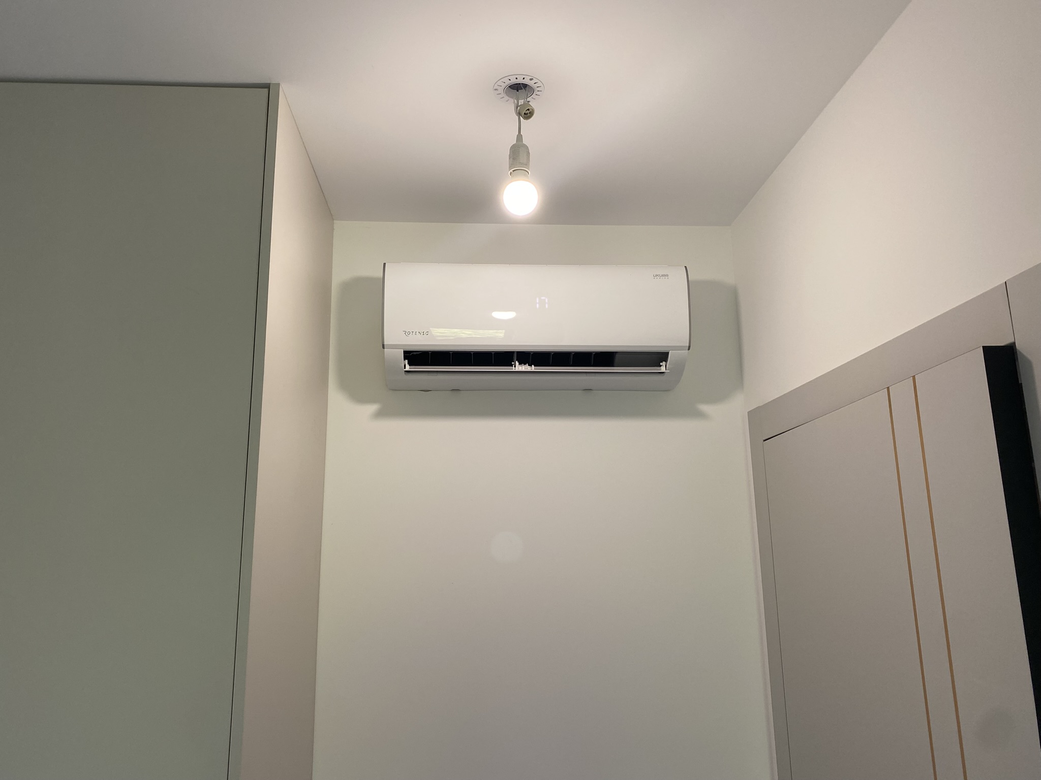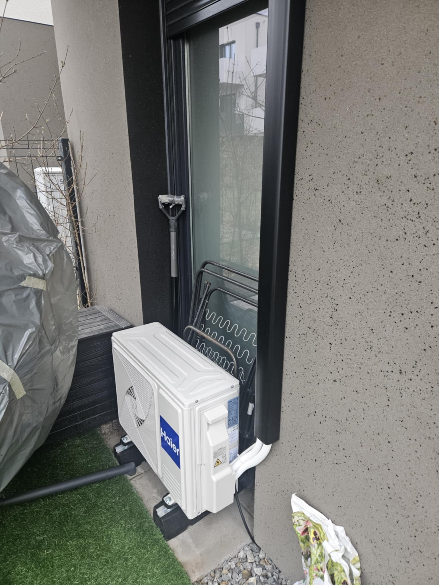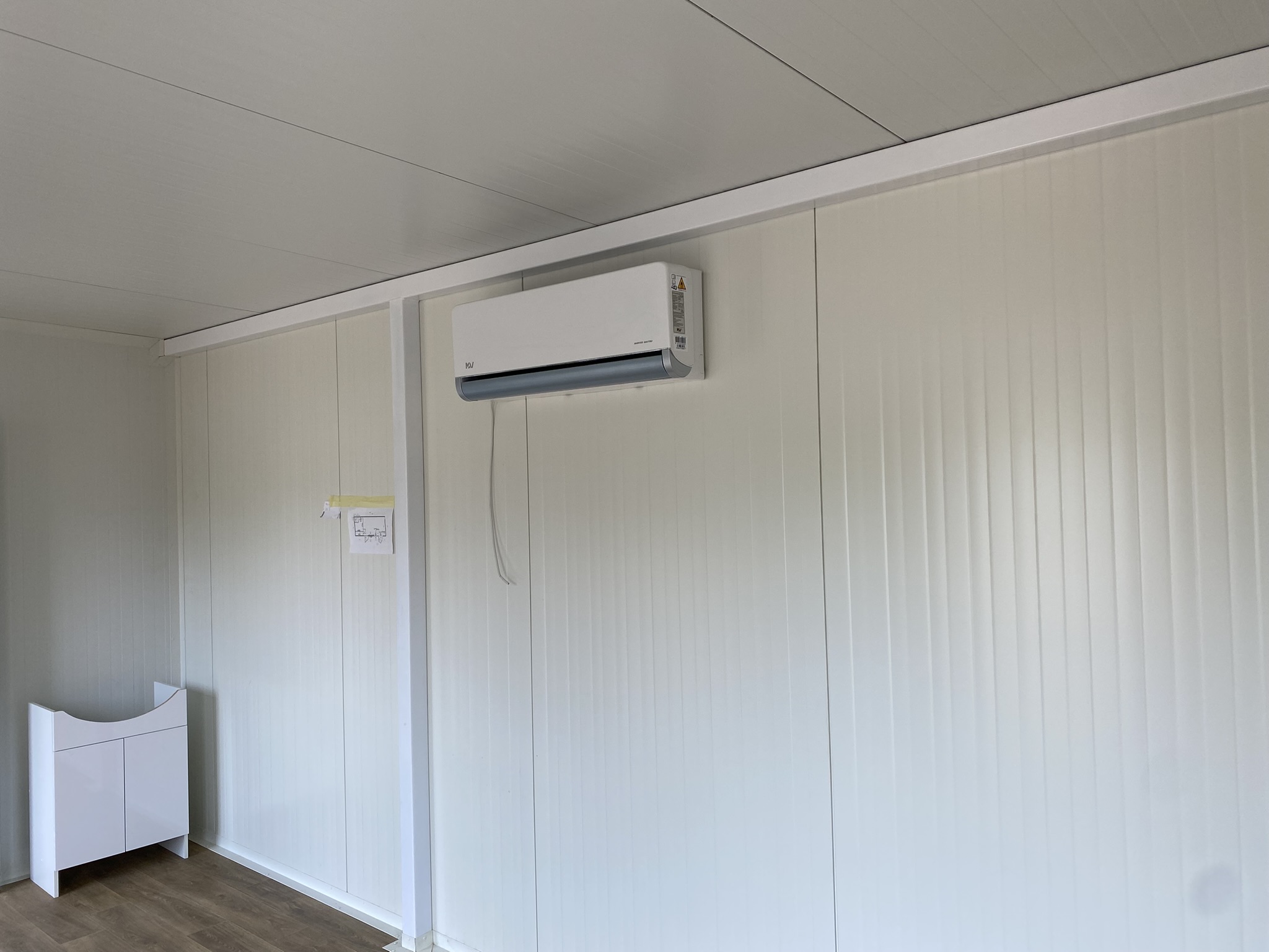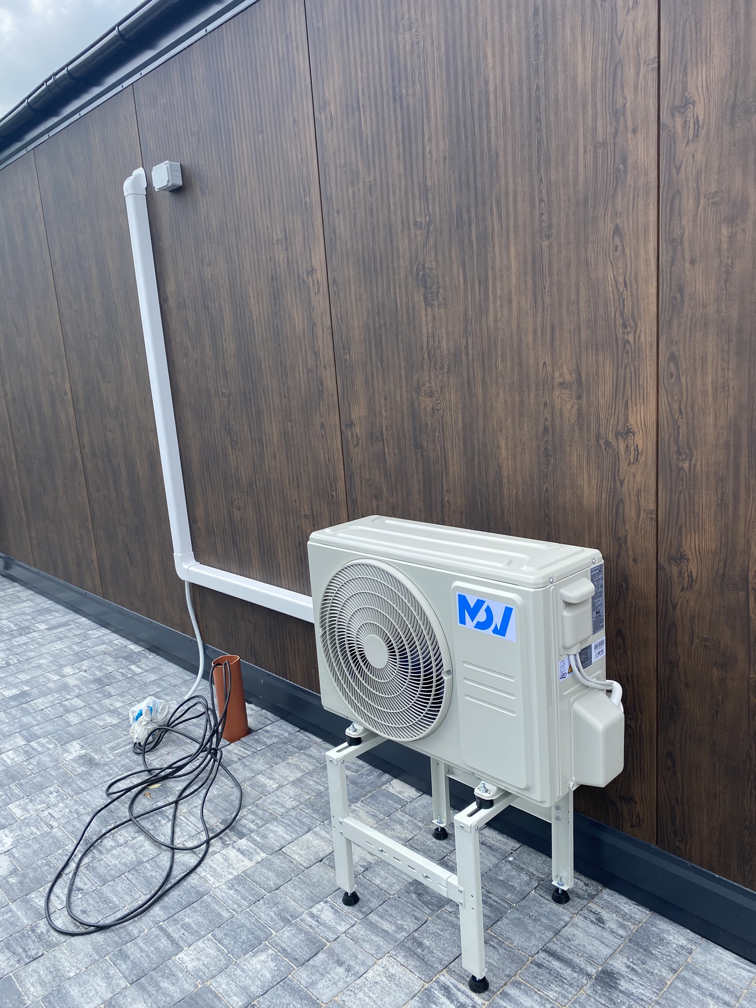 Jednostki wewnetrzne zamontowane nad drzwiami pokojów, instalacja poporwadzona nad podwieszanym sufitem z zastosowaniem pompek skroplin.