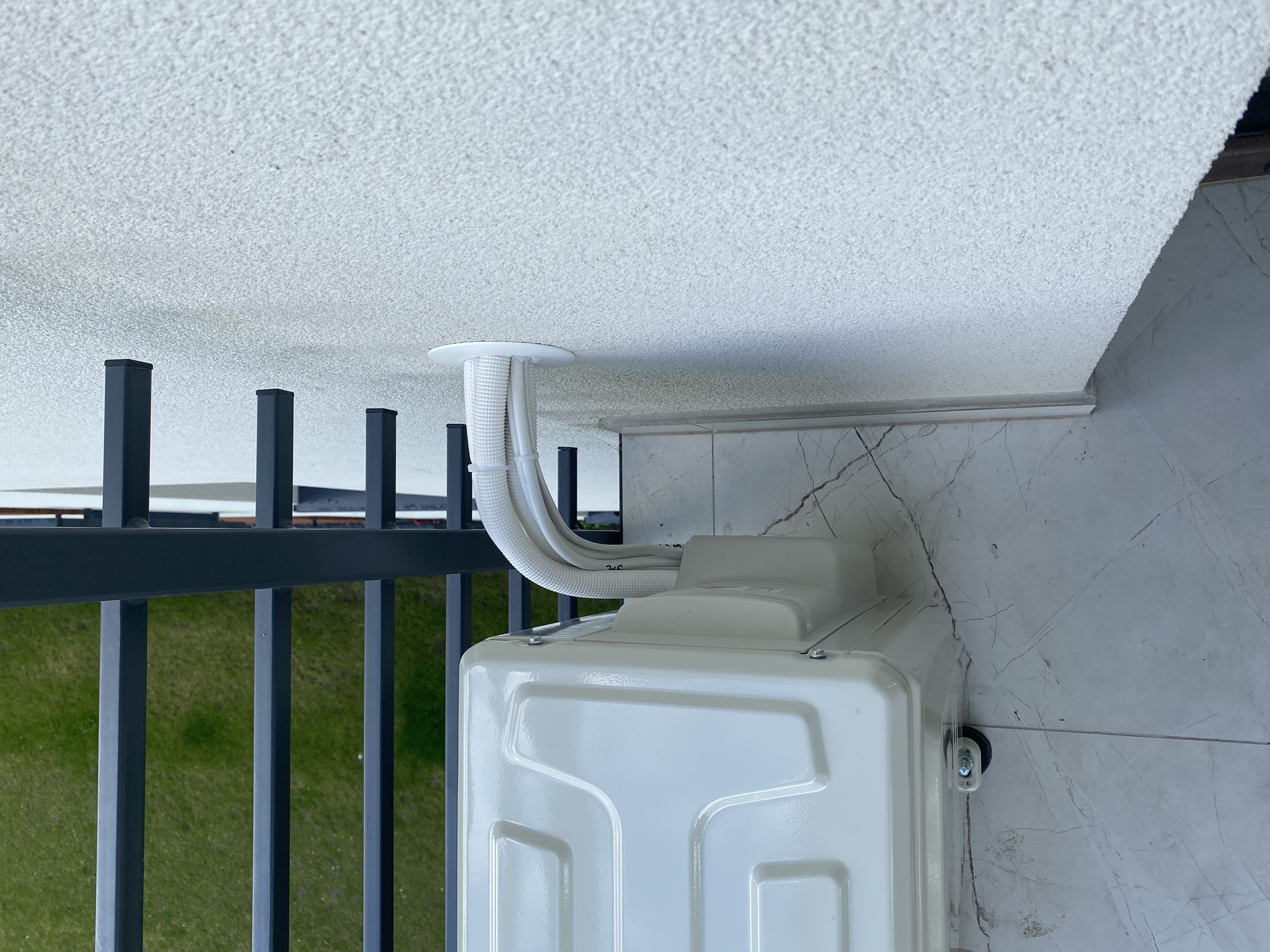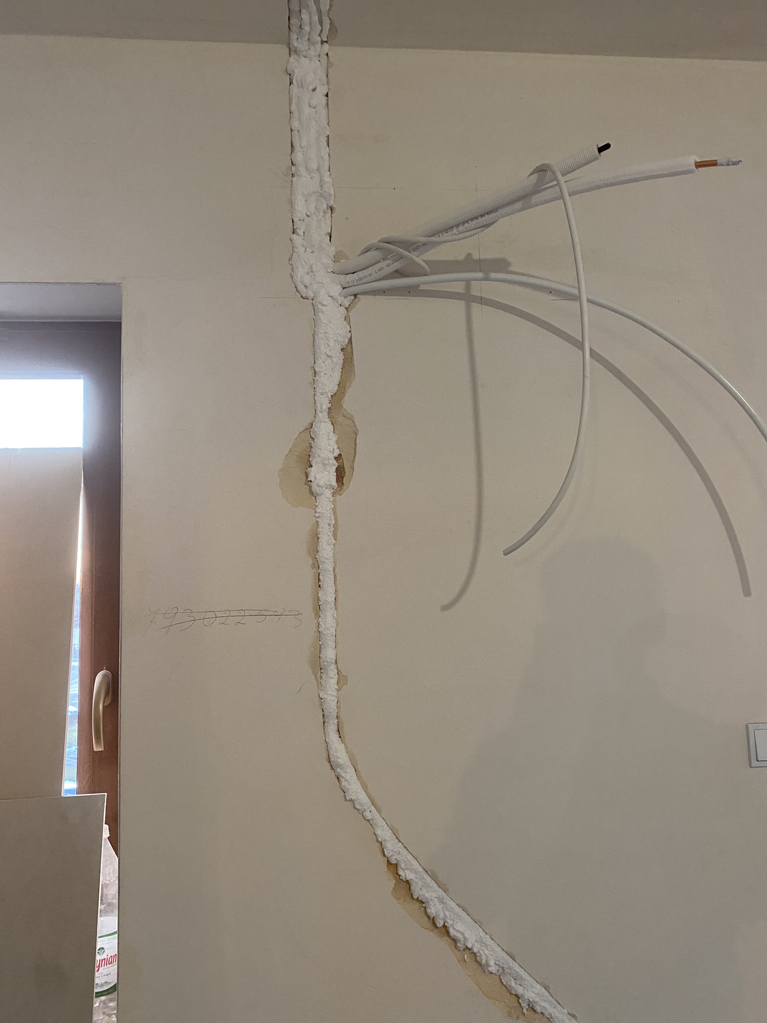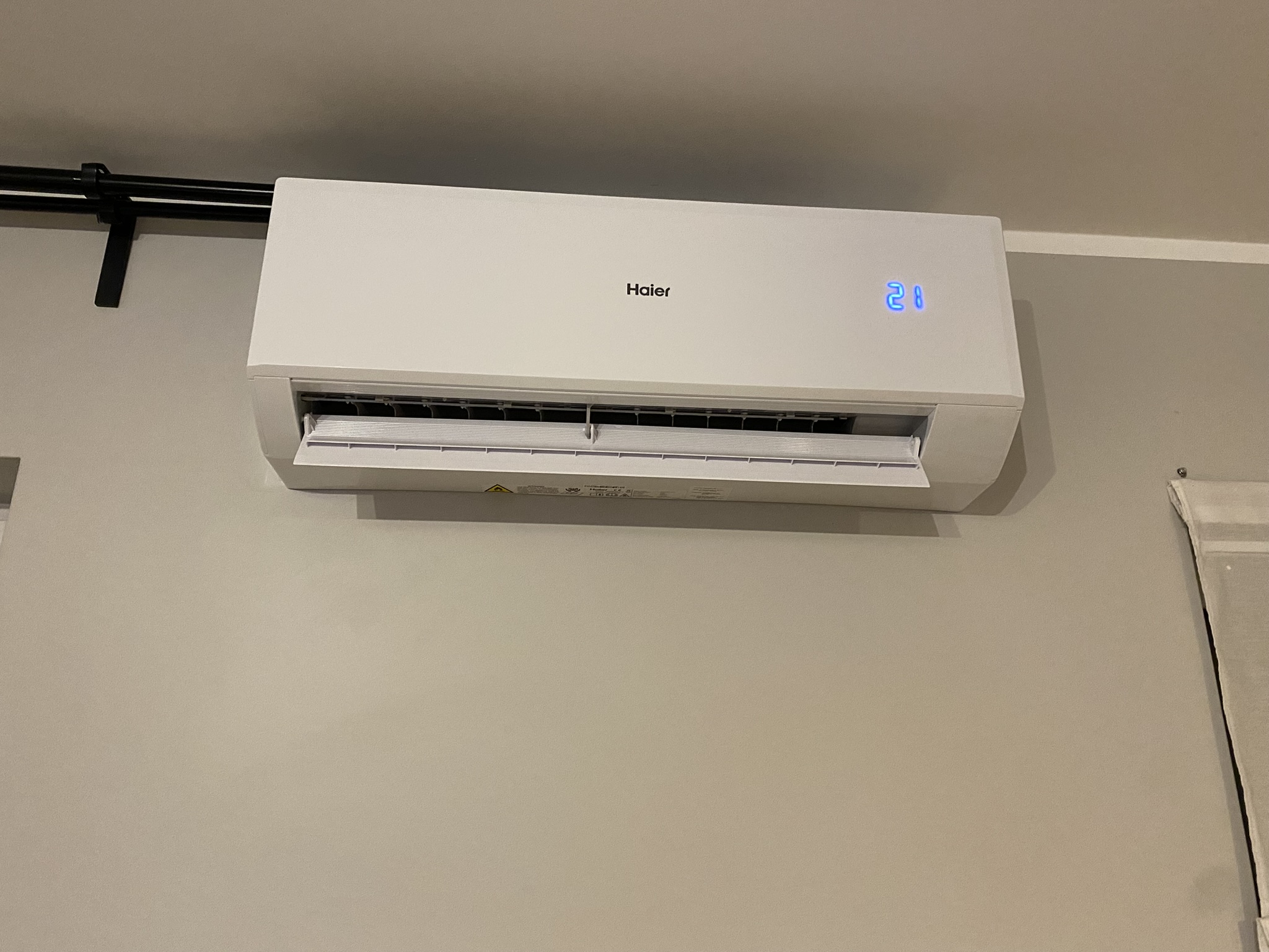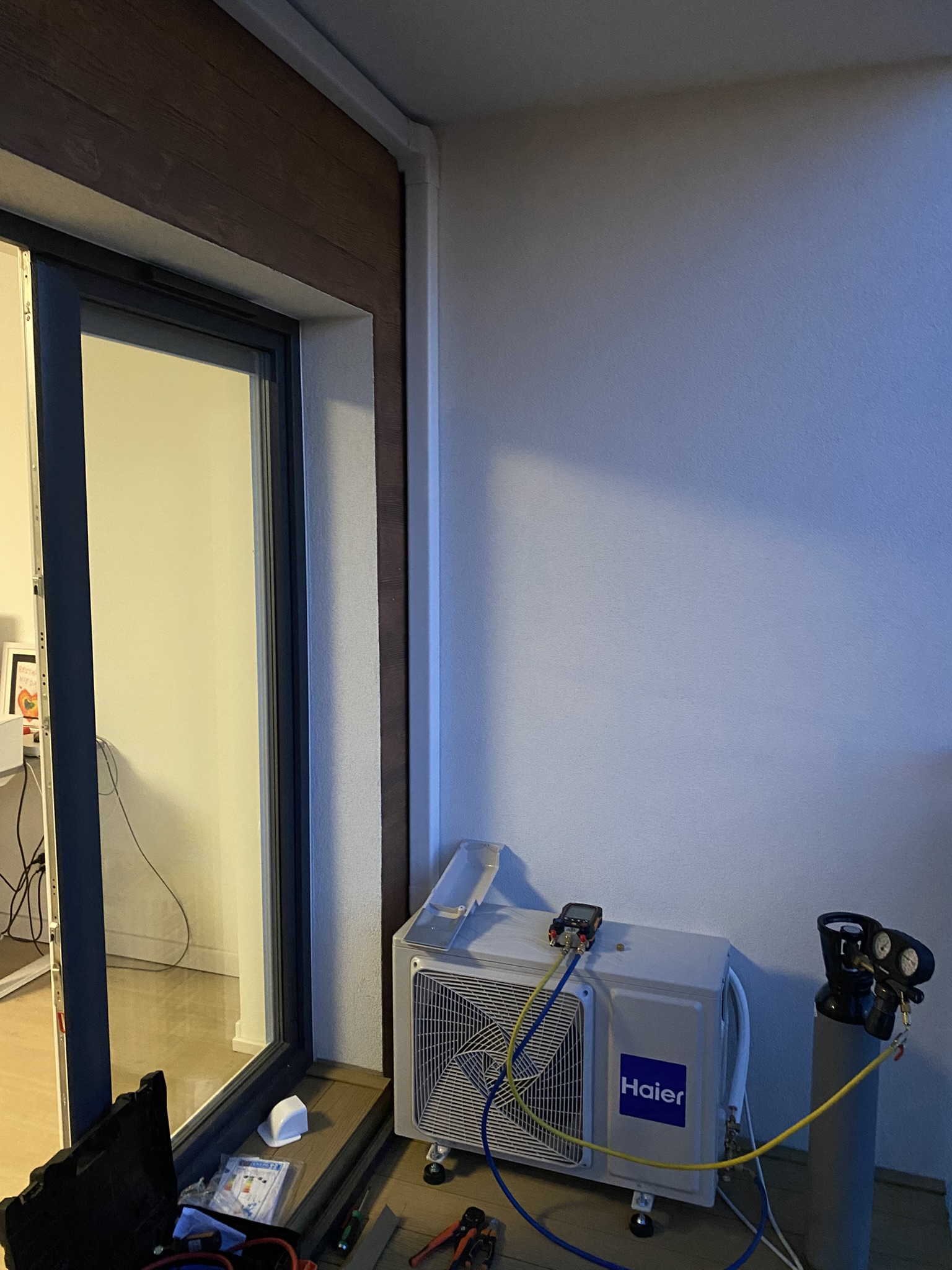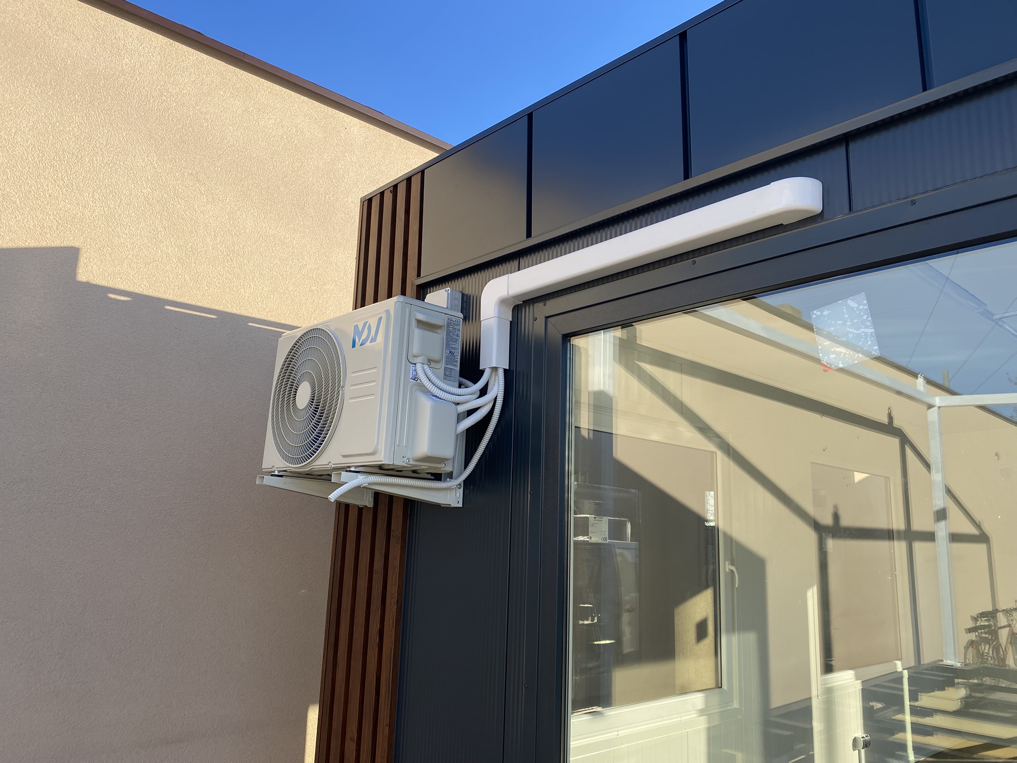 Jednostki wewnetrzne zamontowane nad drzwiami pokojów, instalacja poporwadzona nad podwieszanym sufitem z zastosowaniem pompek skroplin.