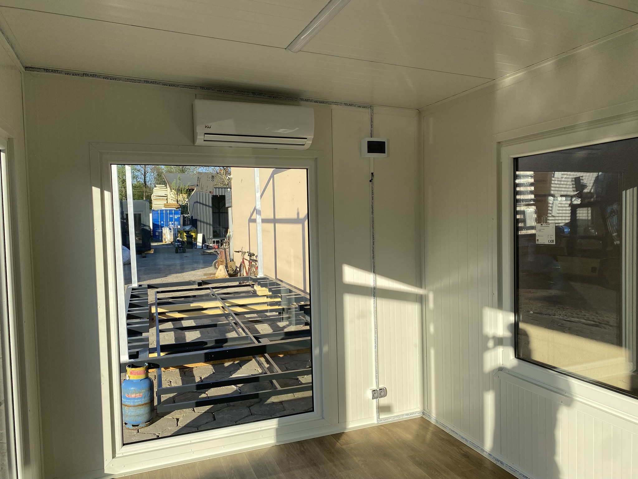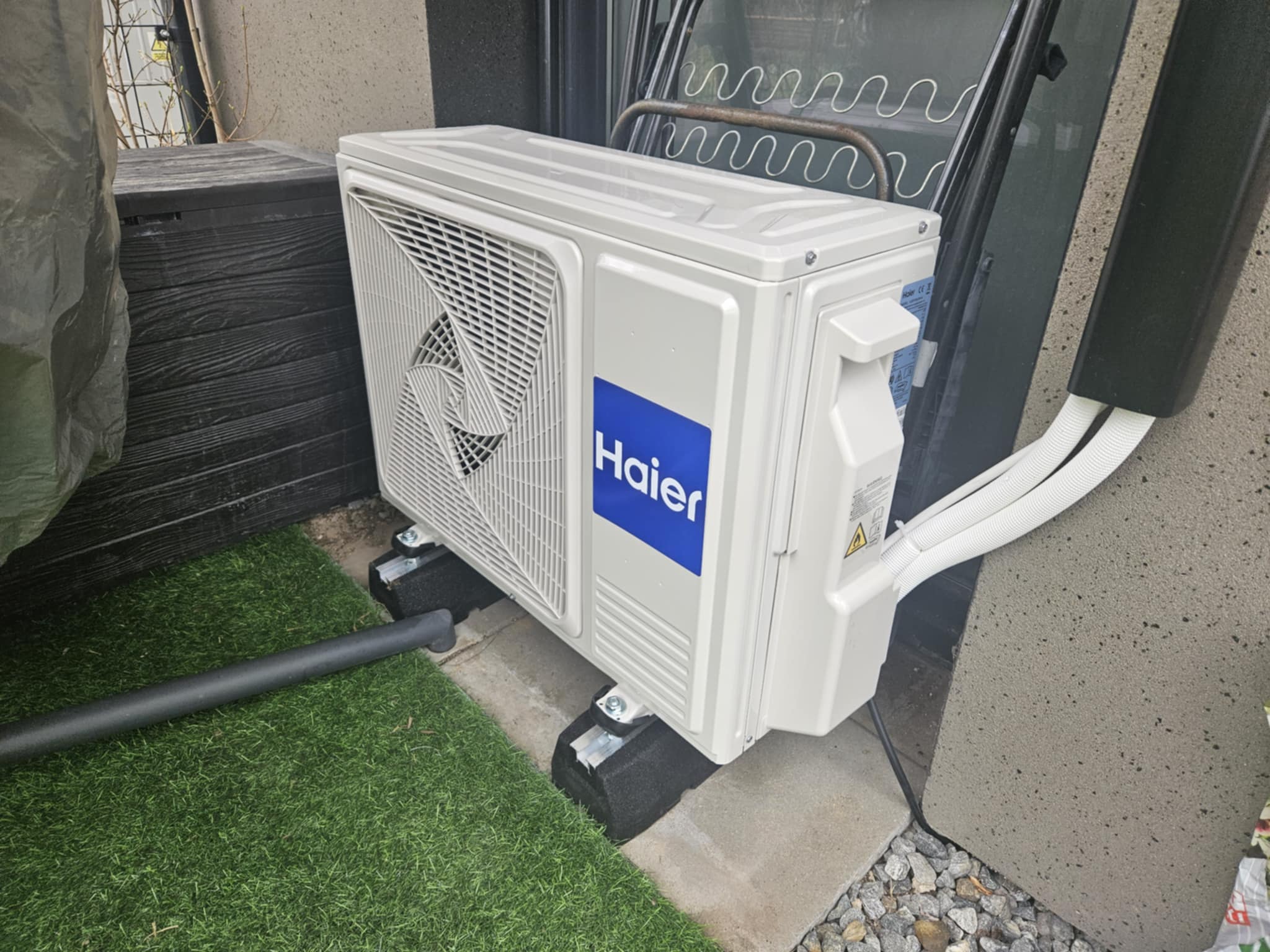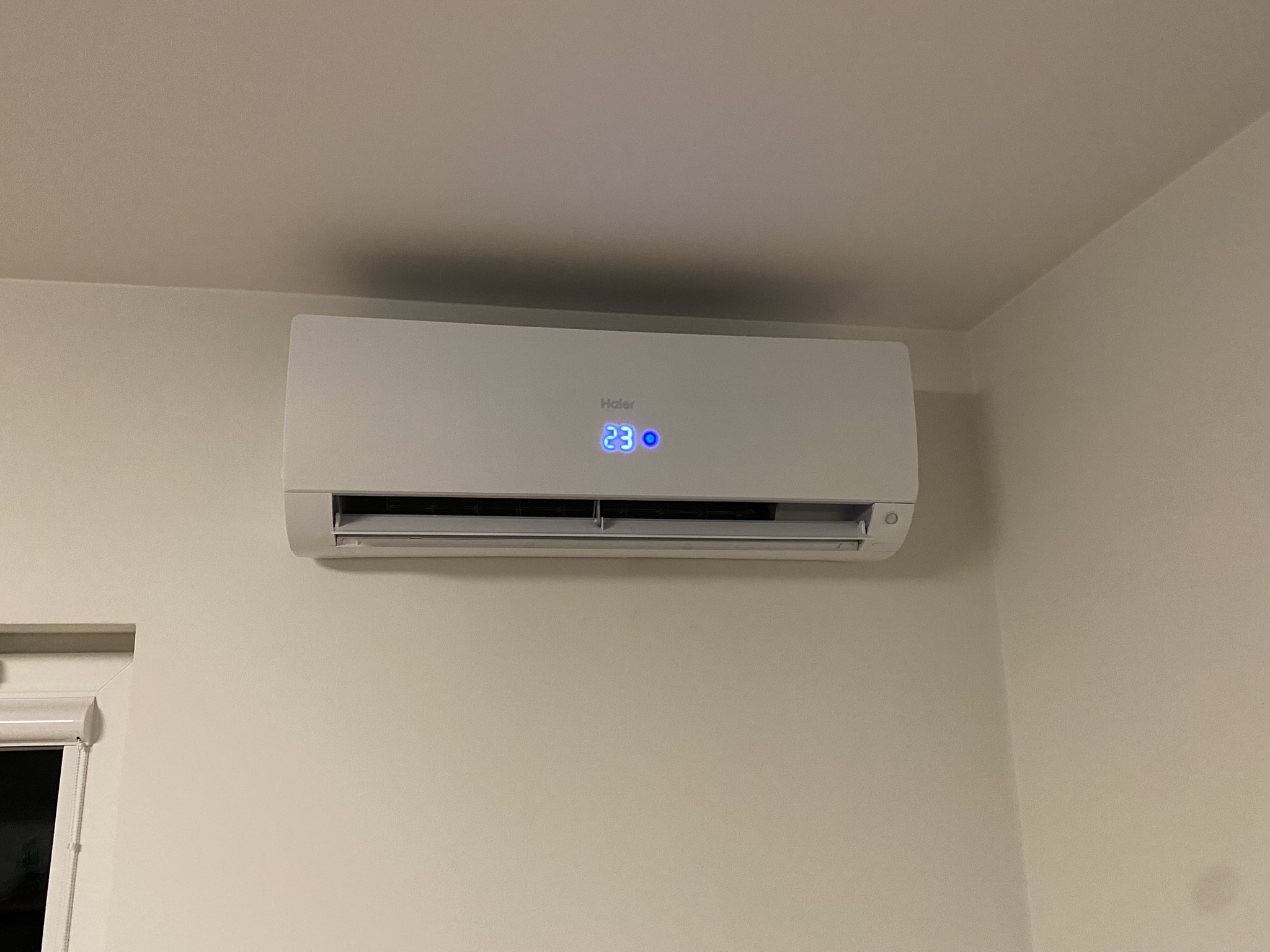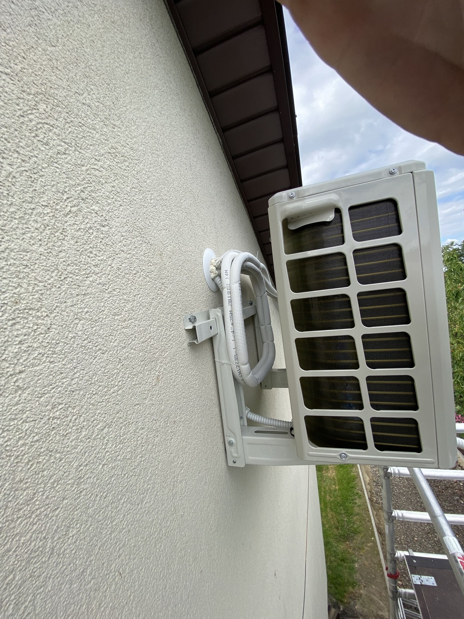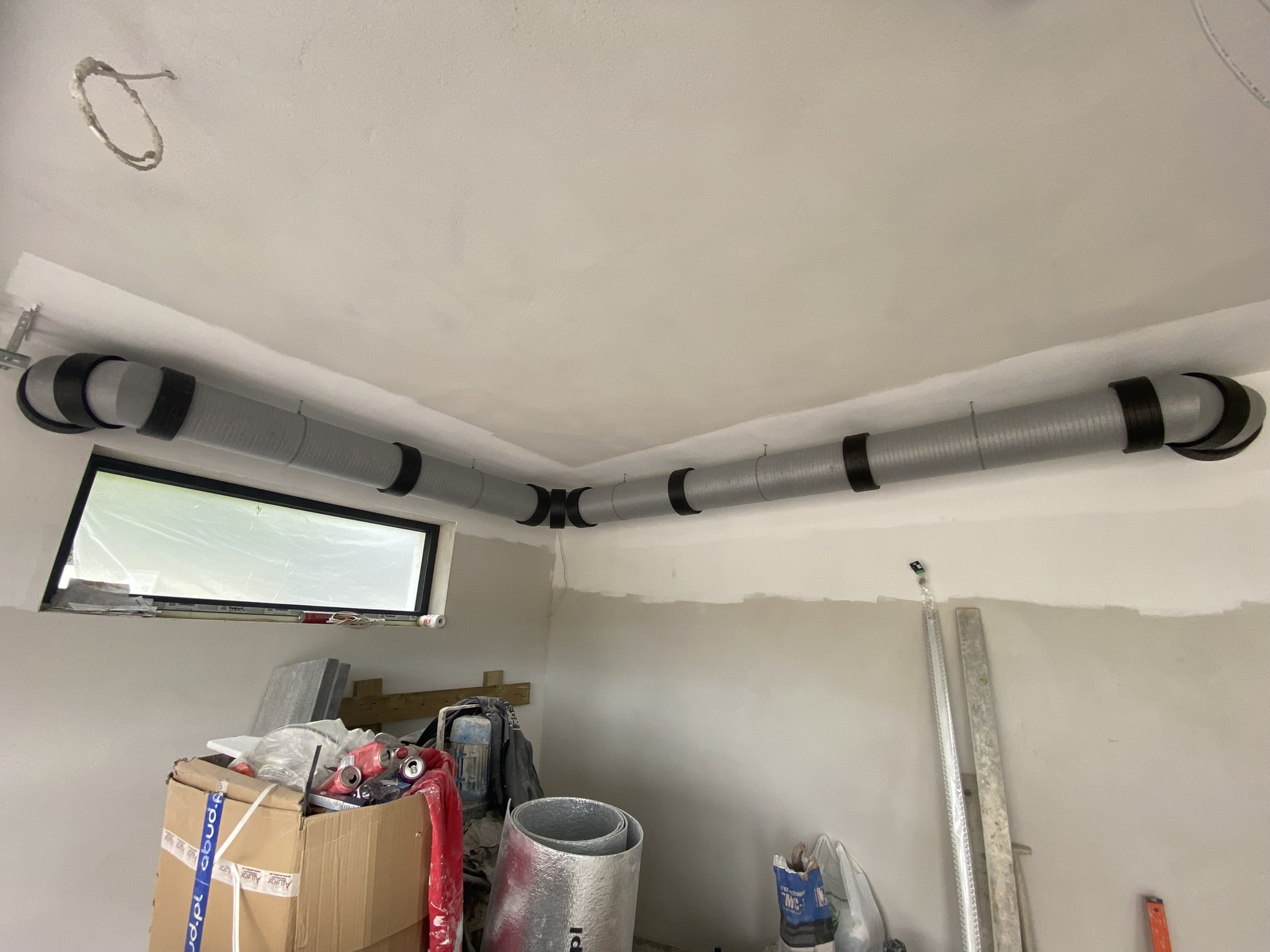 Jednostki wewnetrzne zamontowane nad drzwiami pokojów, instalacja poporwadzona nad podwieszanym sufitem z zastosowaniem pompek skroplin.