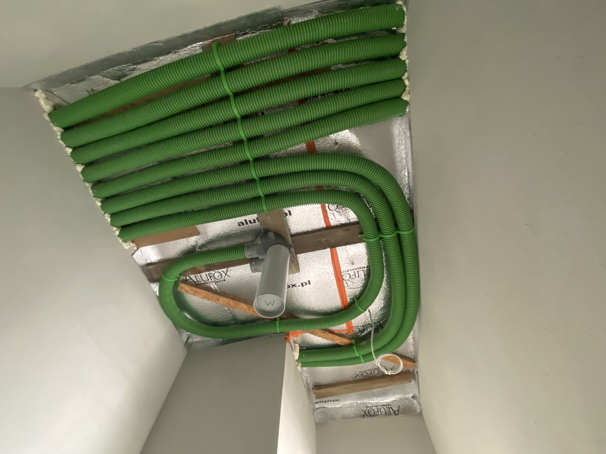 Montaż w bloku, podzielony na 2 etapy – położenie instalacji oraz montaż urządzeń.